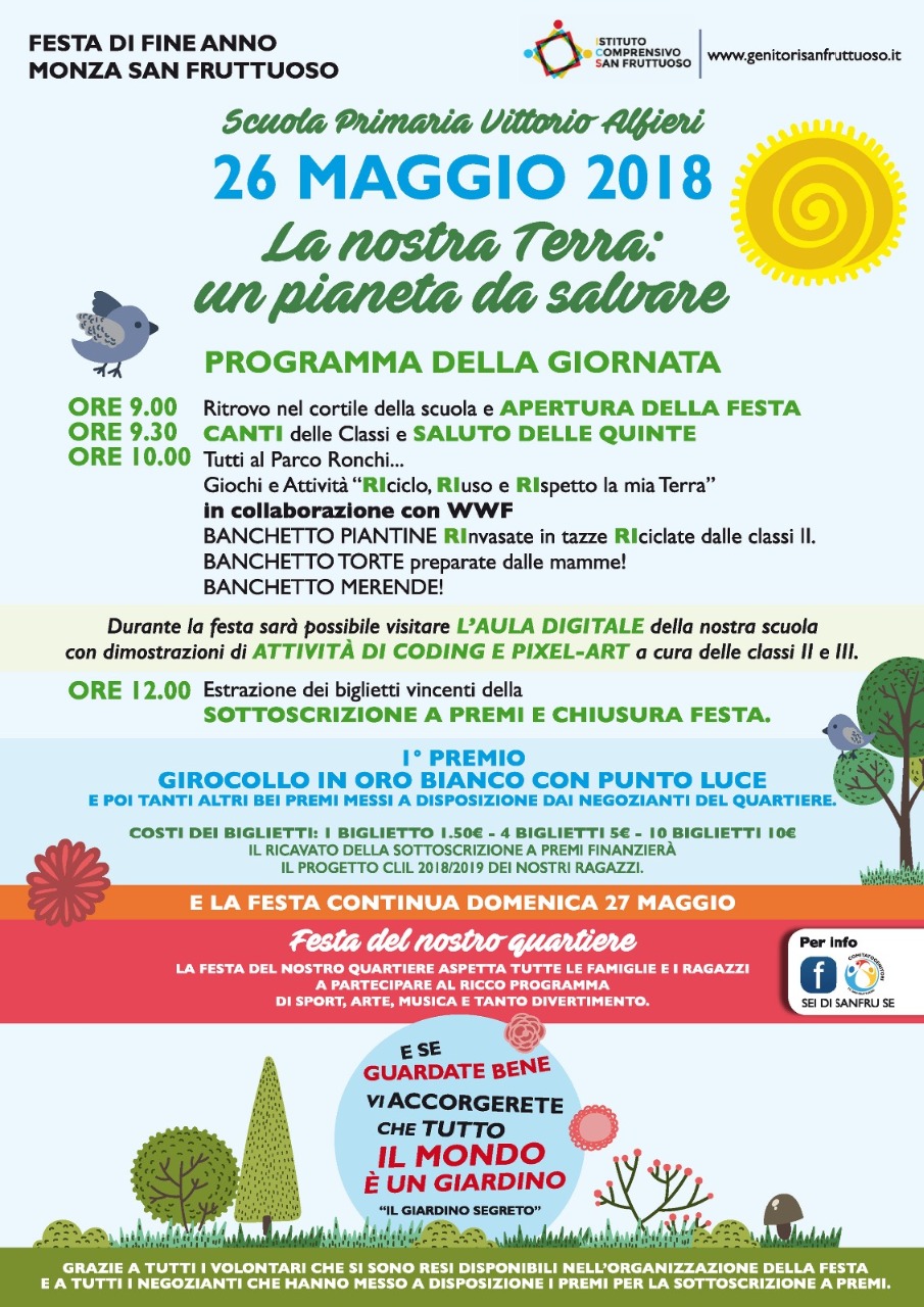 Sabato 26 maggio la festa sarà aperta dalla nostra scuola primaria ALFIERI che come ogni anno ci riserva un programma denso di inziative e di sicuro ricco di emozioni!